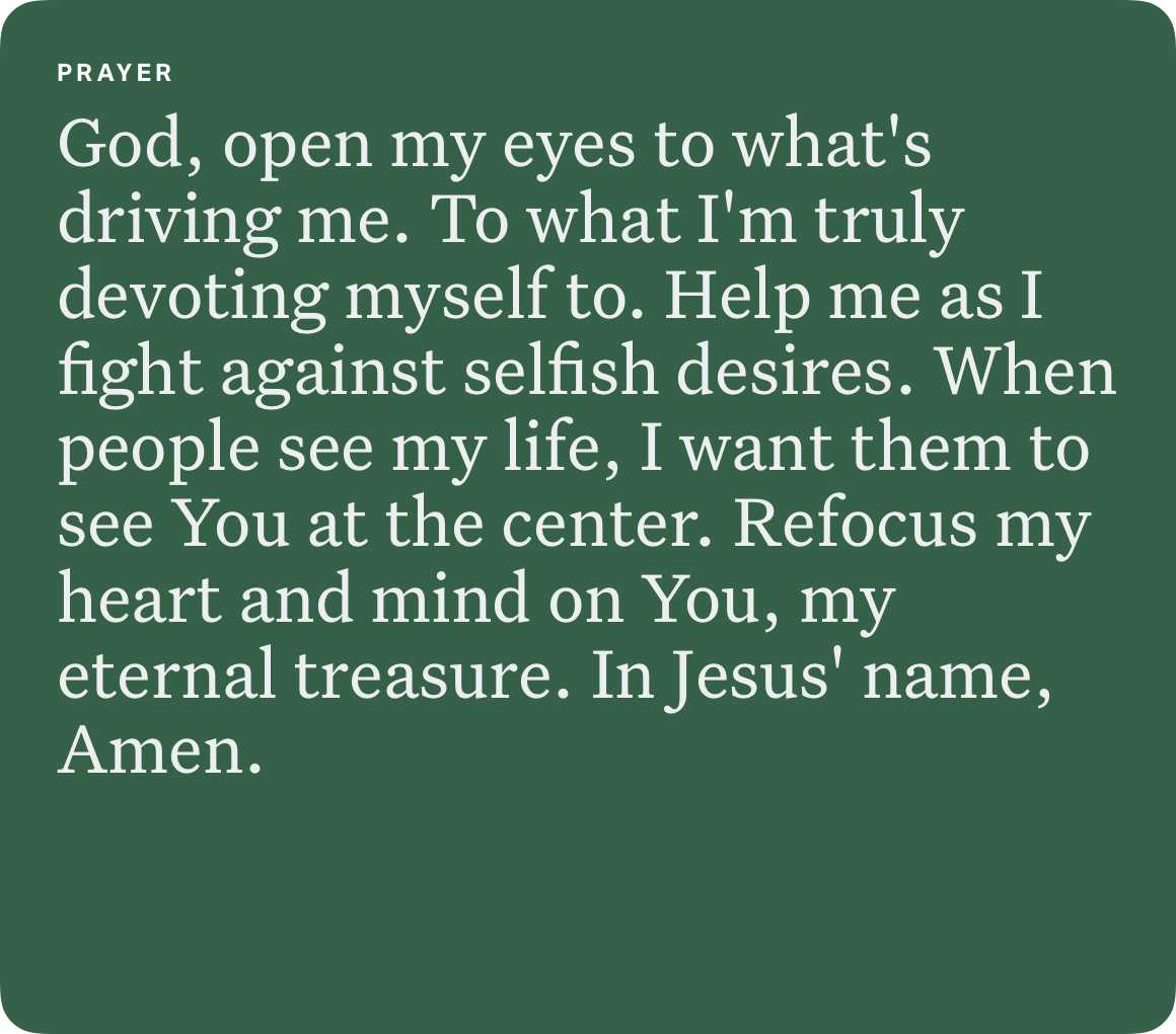 In Matthew 6:21, Jesus says that where our treasure is, there our heart will be also. The things that we treasure in our life reveal where our heart truly is. The things that we think about, spend our money on, and use our energy to attain—that is where our heart is.