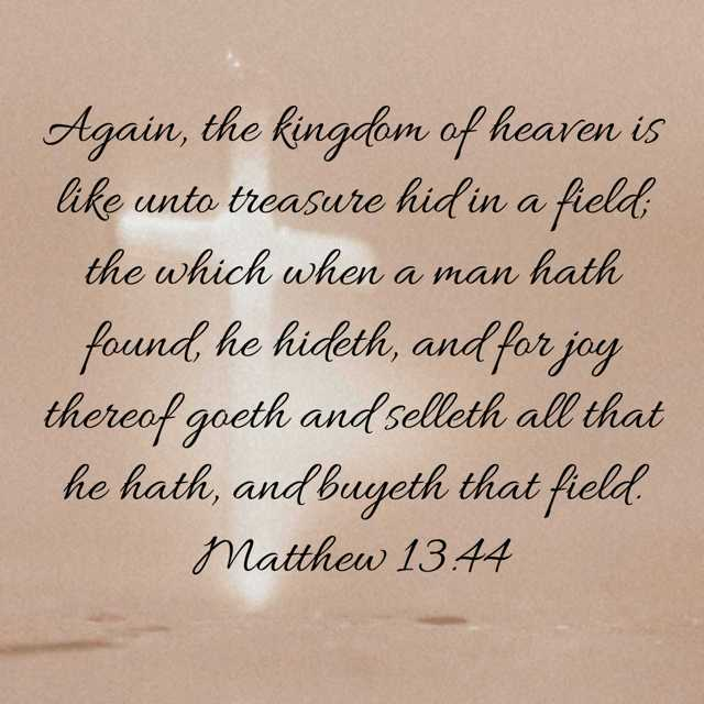 Just imagine for a moment: You are walking across a field and stumble upon an ancient treasure, forgotten by the whole world. You realize the plot of land is for sale. What would you do? How quickly would you sell everything you have to buy the field with the treasure? Fast? Of course! You’ve found something of great value, worth so much more than anything you had before!