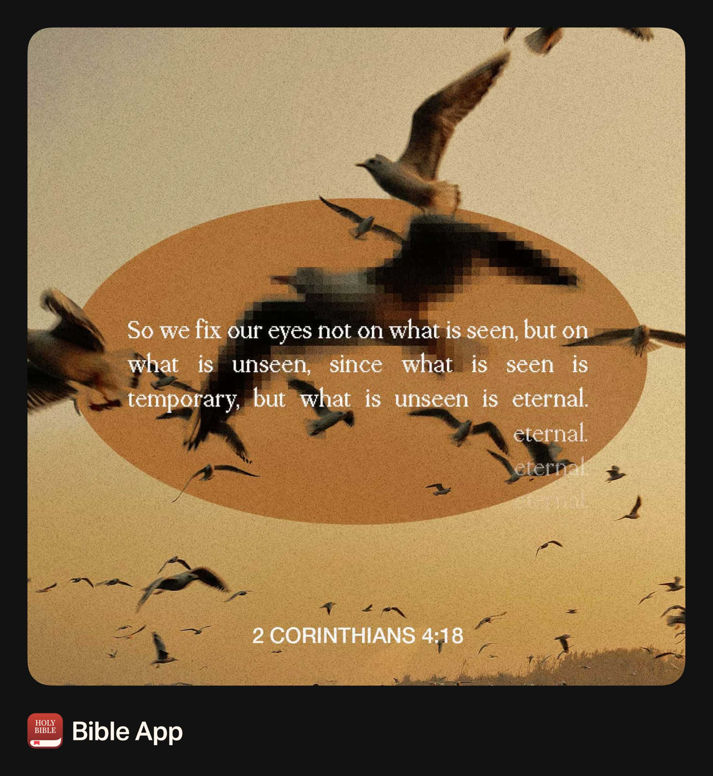 But there are also things we cannot see: behind the breath of the wind, beyond the depths of the universe, beneath the foundations of love. Through Christ, all things were created—in heaven and on earth, both visible and invisible (Colossians 1:16).