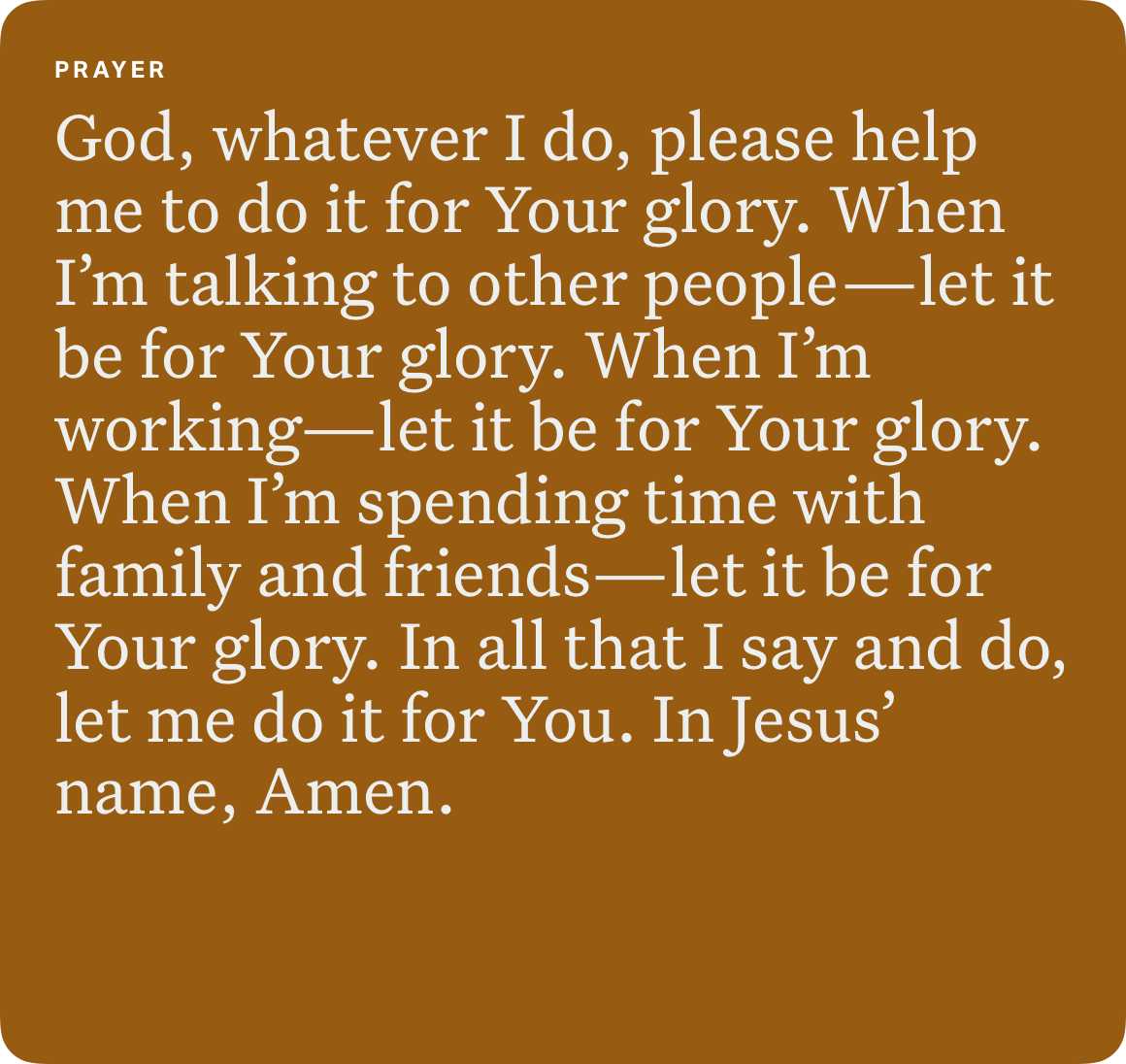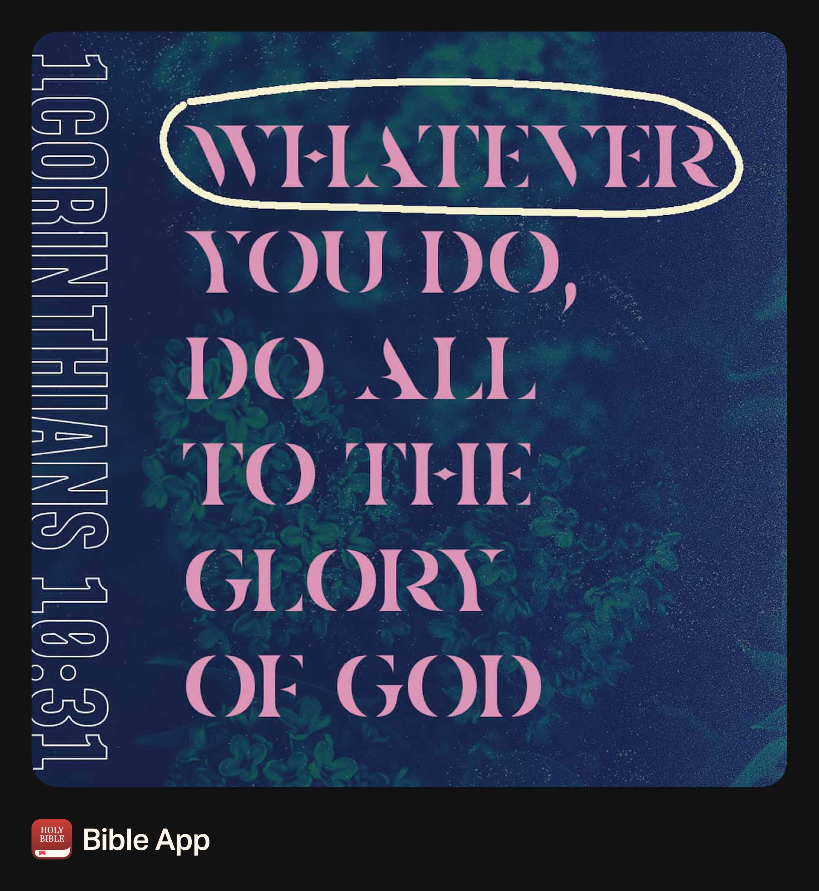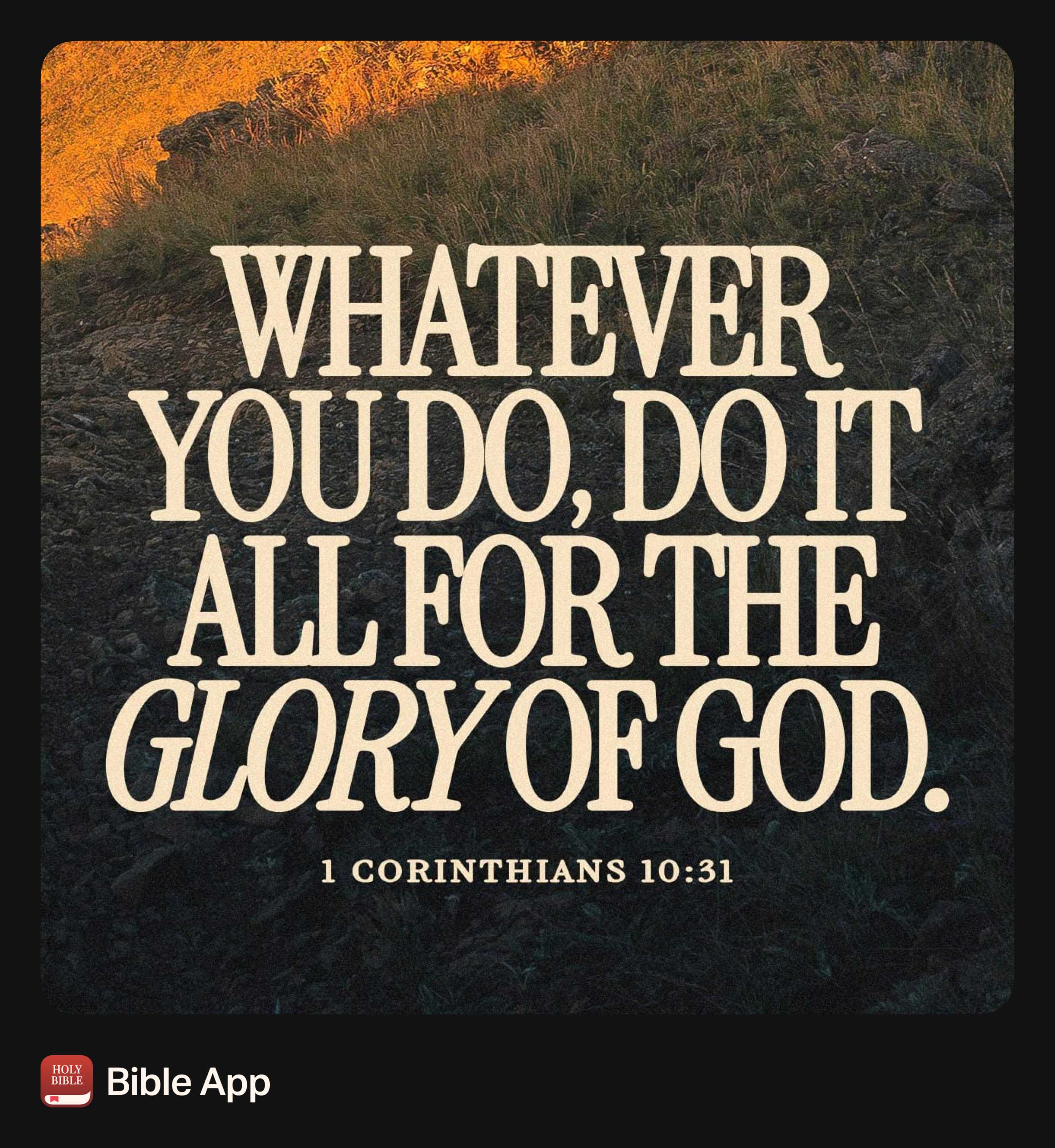 “So whether you eat or drink, or whatever you do, do it all for the glory of God.”
