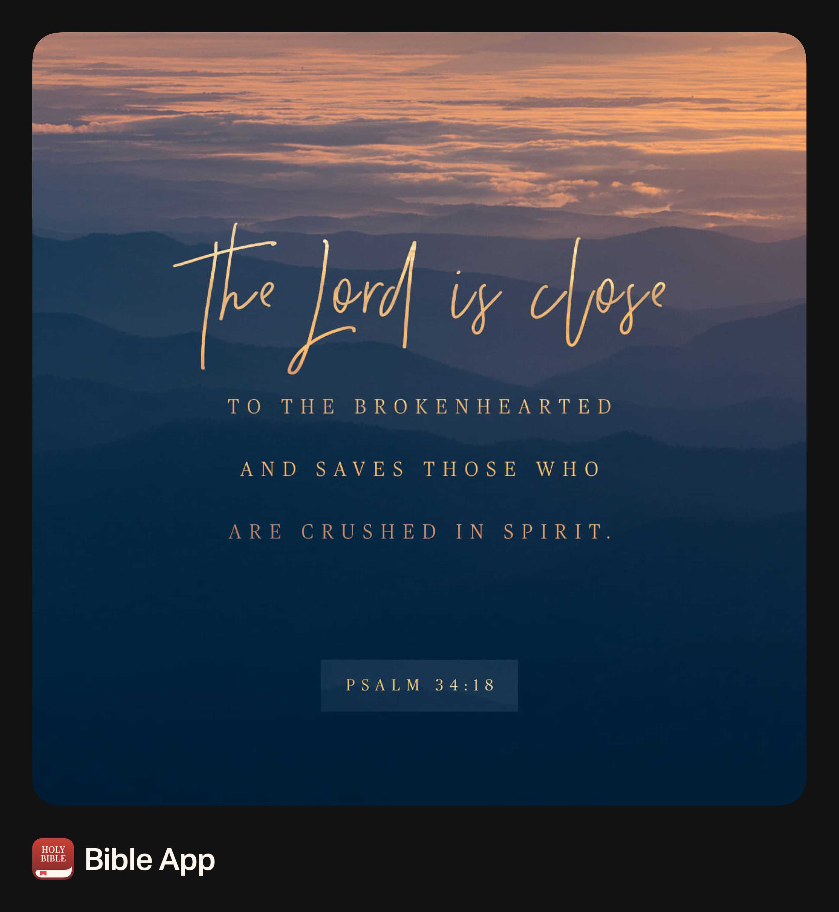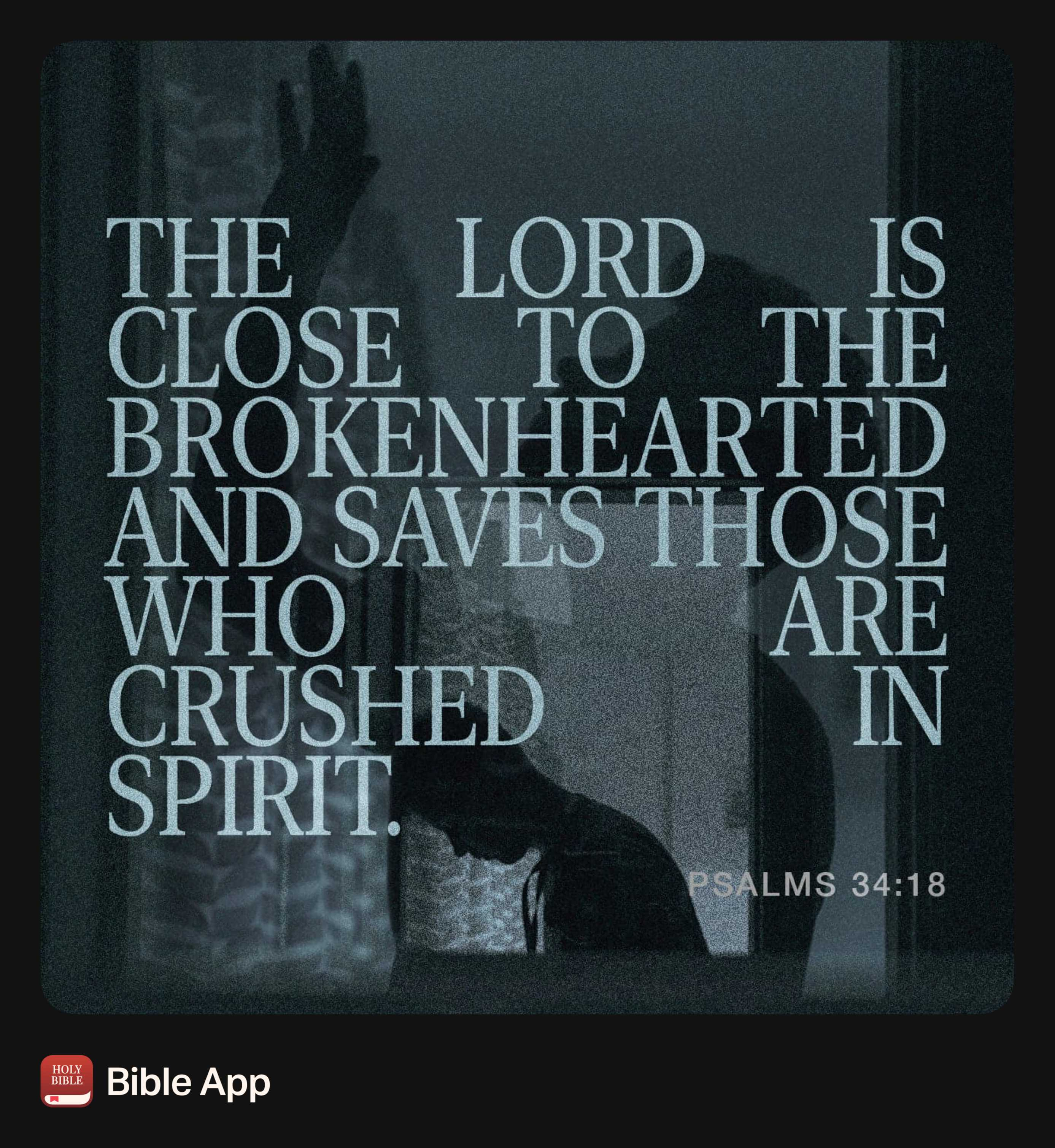 The Lord is close to the brokenhearted; he rescues those whose spirits are crushed.