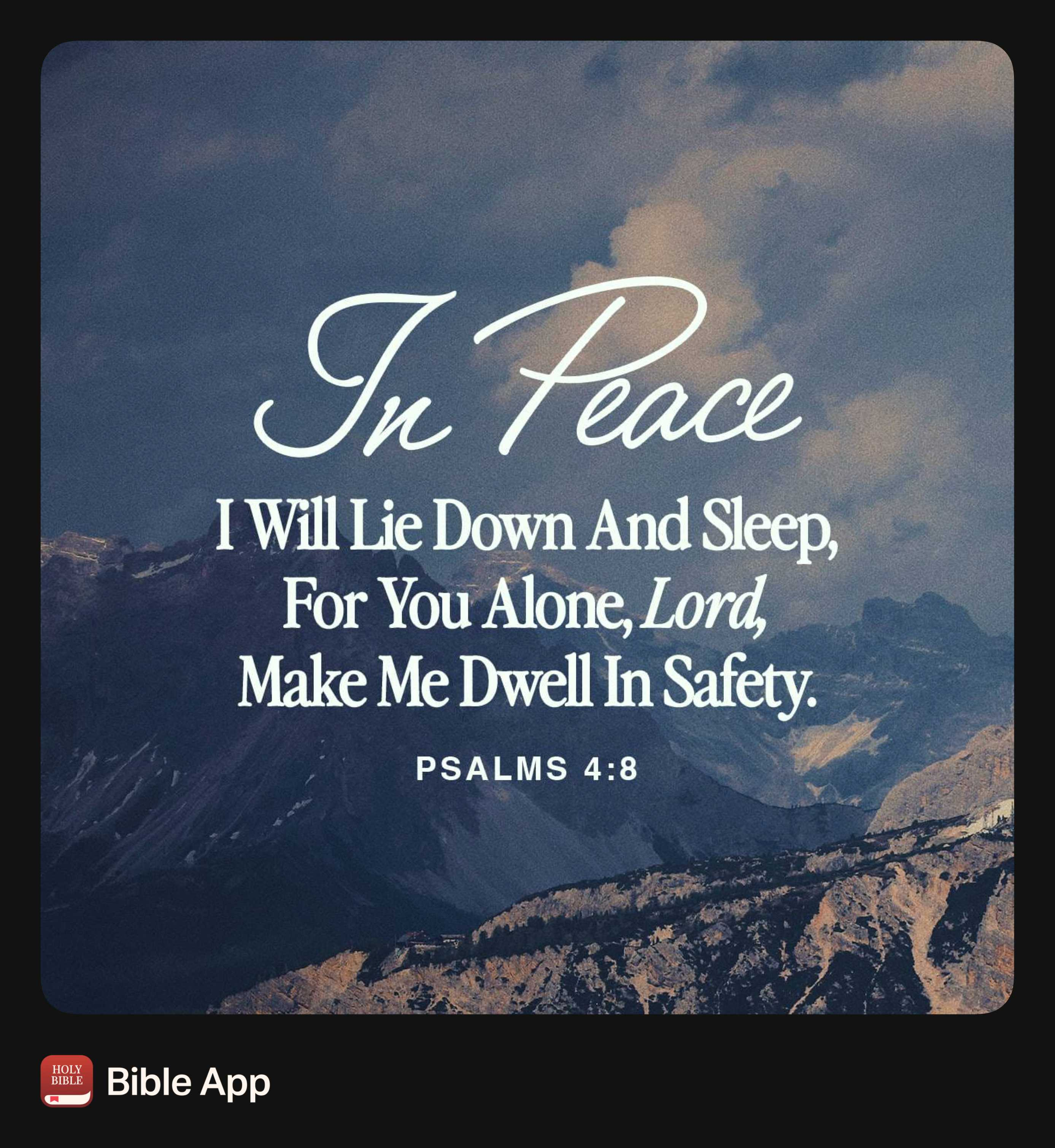 We can sleep in peace. Why? Because of the Lord. He will keep us safe.
