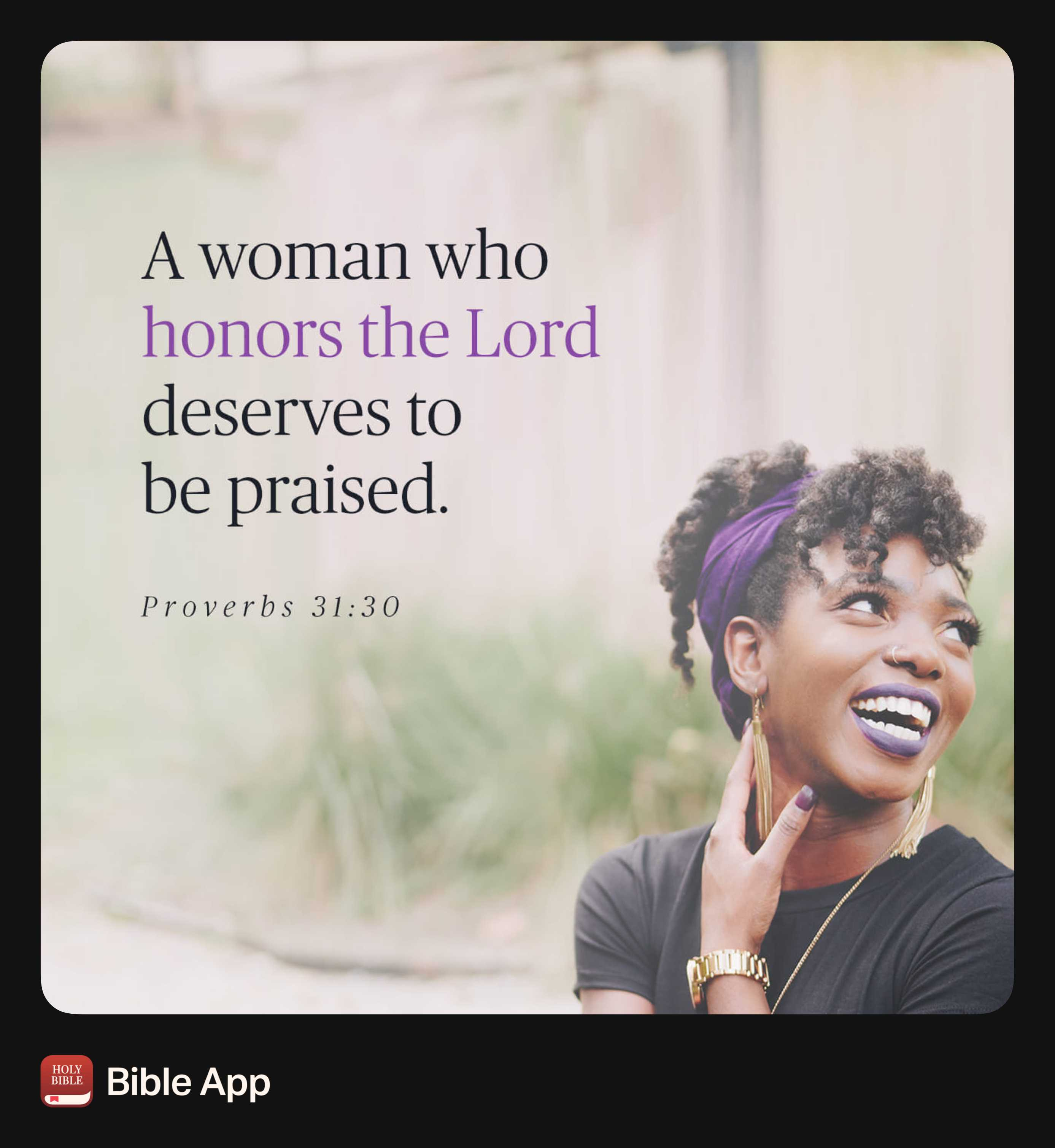 “Charm is deceptive, and beauty is fleeting; but a woman who fears the Lord is to be praised.” - Proverbs 31:30 NIV