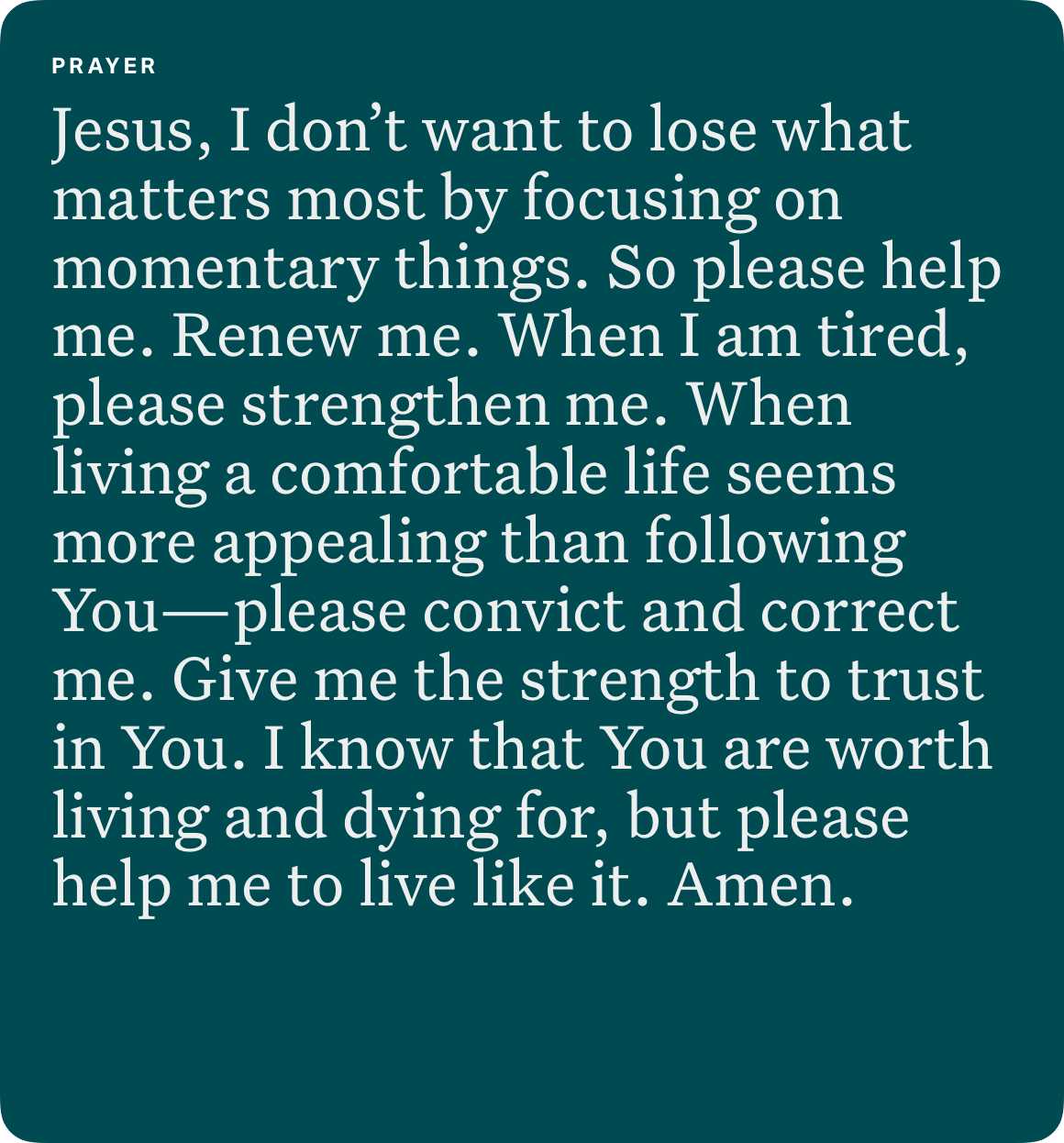 If you’re walking through a difficult season of life, spend some time meditating on the promises of God. He promises to never abandon you or leave you, but to walk alongside you through trials. And at the end of the trial, you’ll be more like Christ.