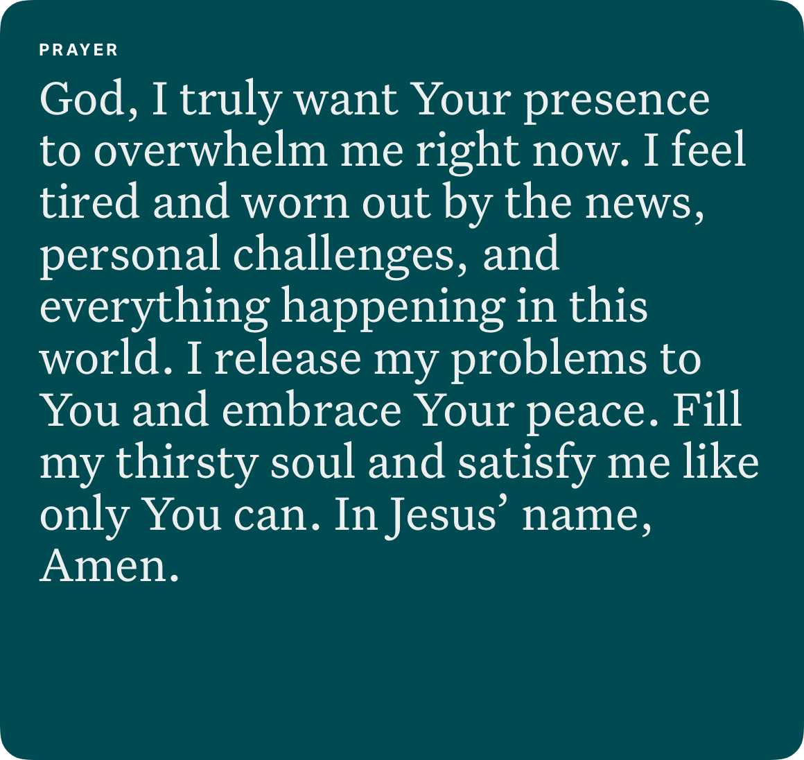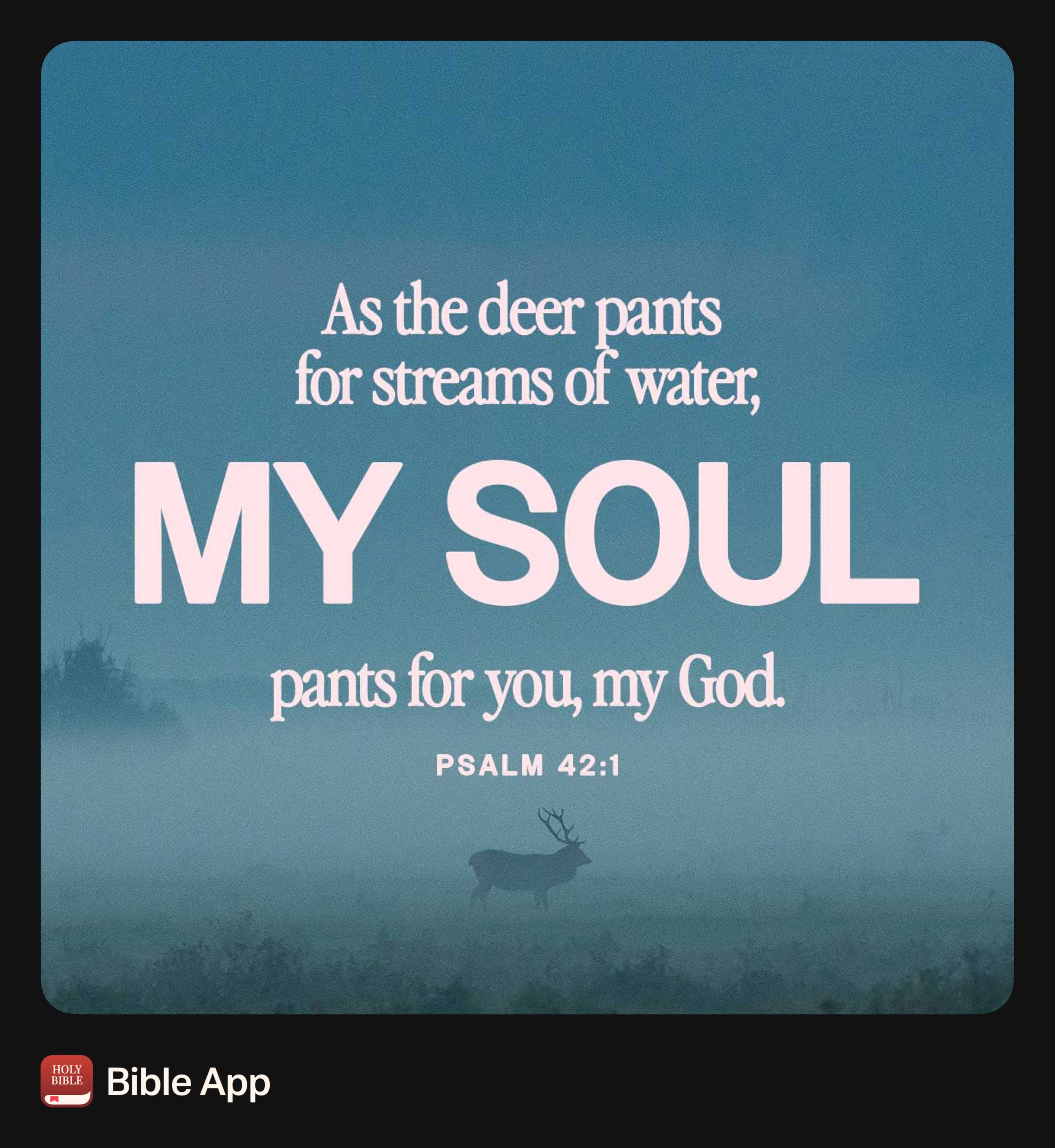 Just like the deer desires water, the psalmist’s soul desires the presence of God. He knows that the solution to his problems is not more accomplishments and praise—it’s spending time in the presence of God.