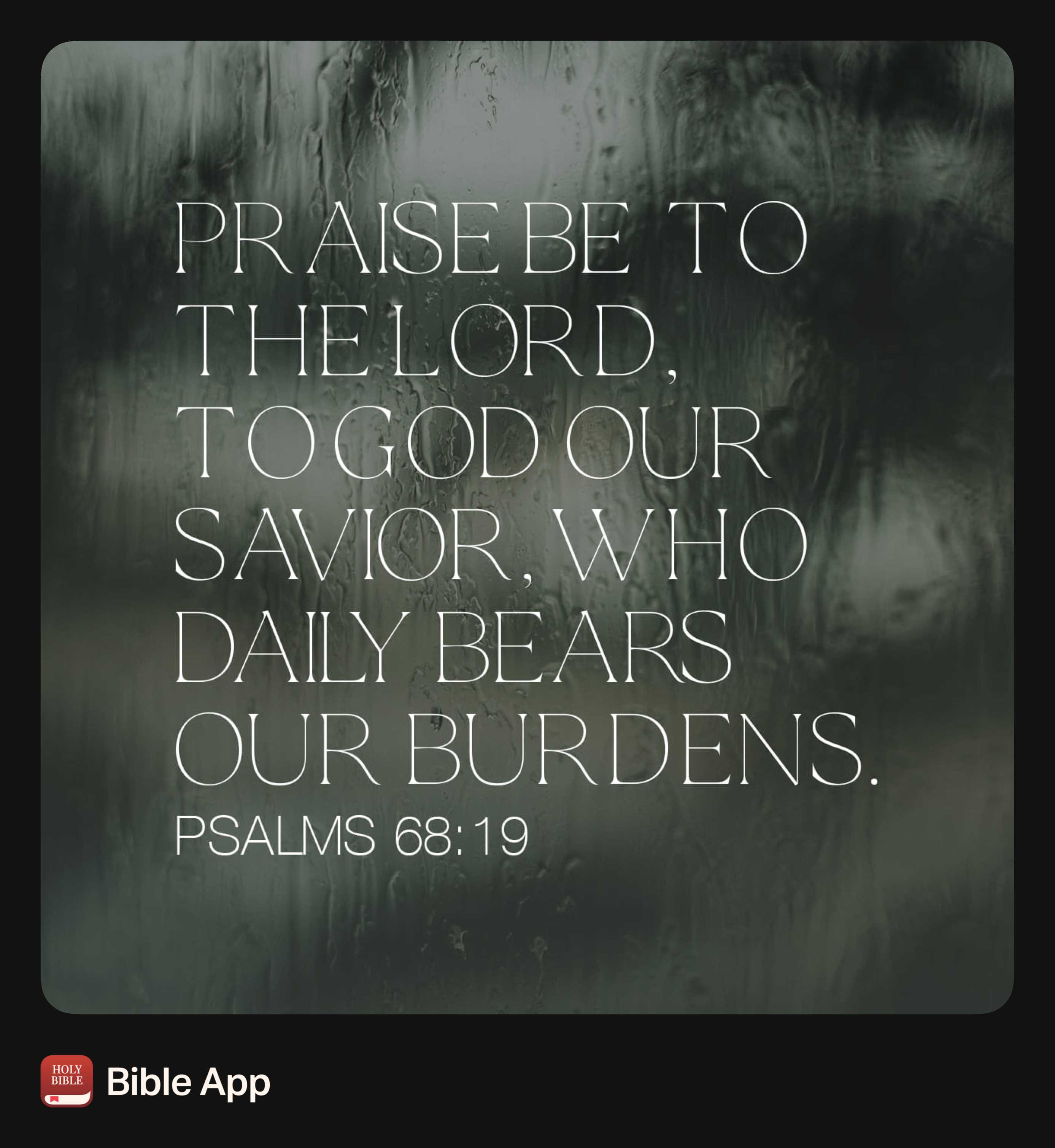Praise be to the Lord, to God our Savior, who daily bears our burdens.