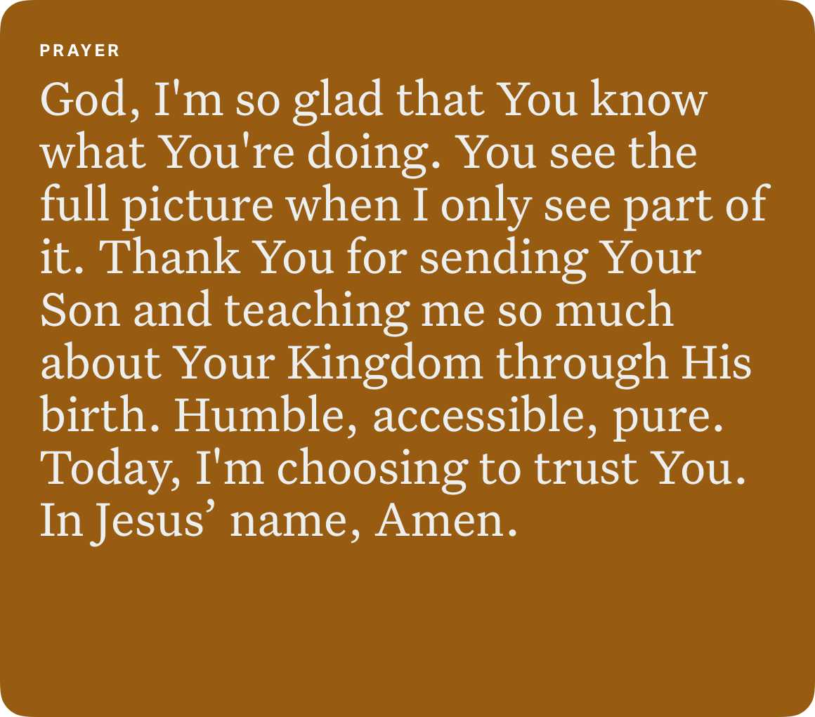 It could've been because of the census that Bethlehem’s inns were full of people making the journey home. It also could've been because of a misunderstood "scandal" surrounding Mary and Joseph. Regardless, when the time came, Mary gave birth to Jesus in the only place available to them: a stable. She placed him in a manger—a feeding trough—because that’s all there was. Surely this was ...