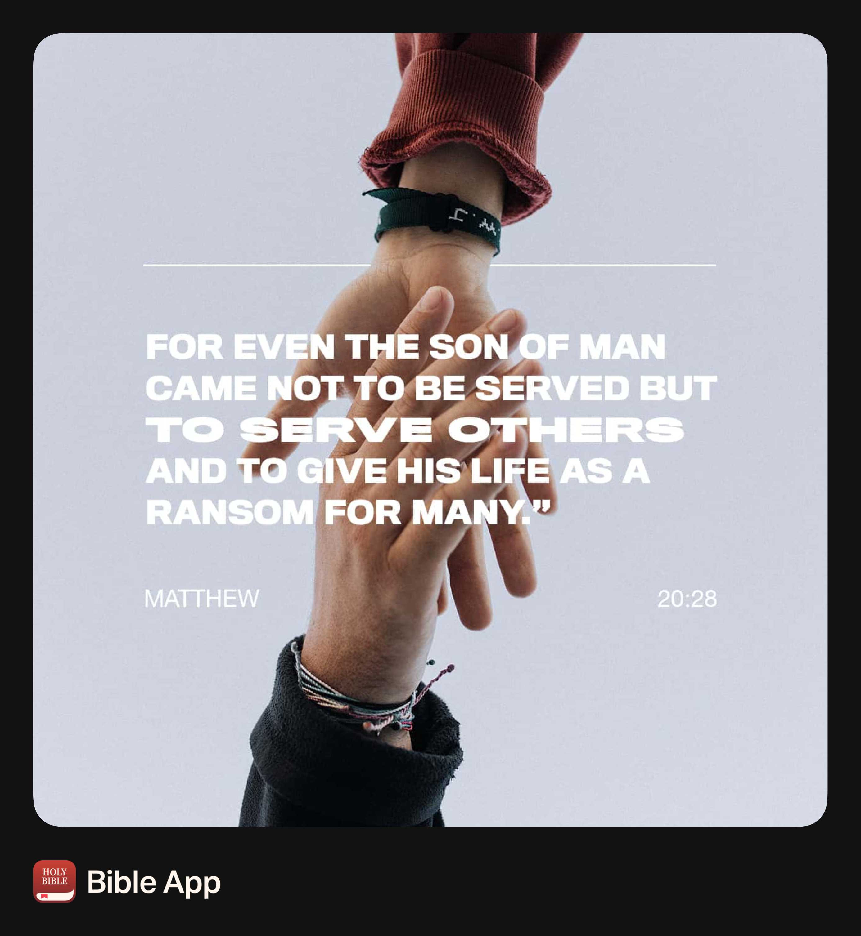 “For even the Son of Man came not to be served but to serve others and to give his life as a ransom for many.”
