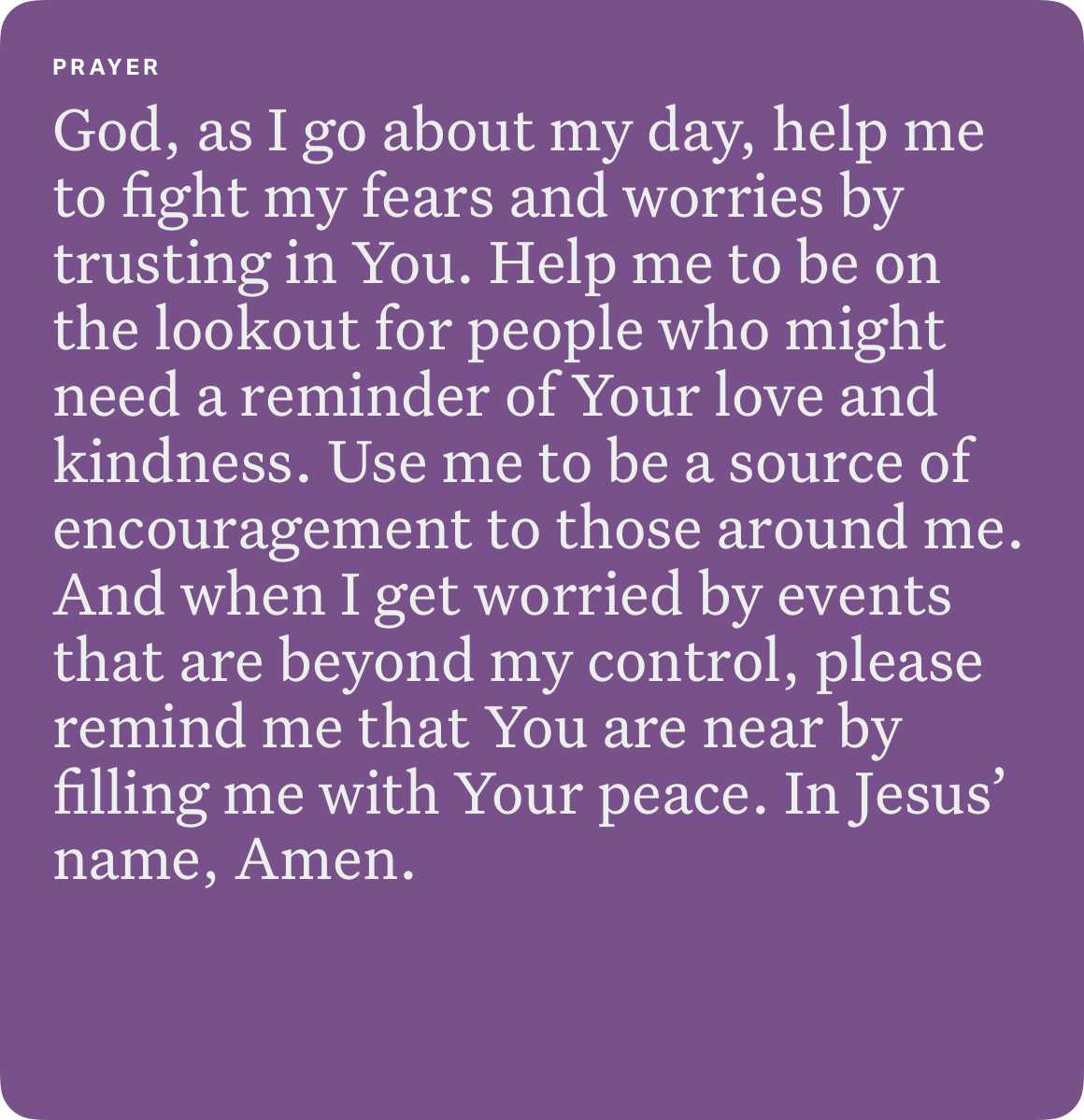 It seems there’s always something to worry about: natural disasters, current (and potential) wars, shaky finances, relational brokenness, unmet expectations, political/cultural/racial divisions, senseless violence, our kids, our jobs, our health, and more—much more. But many of the things we fear are largely out of our control.