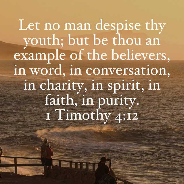 “Don’t let anyone look down on you because you are young, but set an example for the believers in speech, in conduct, in love, in faith and in purity.”