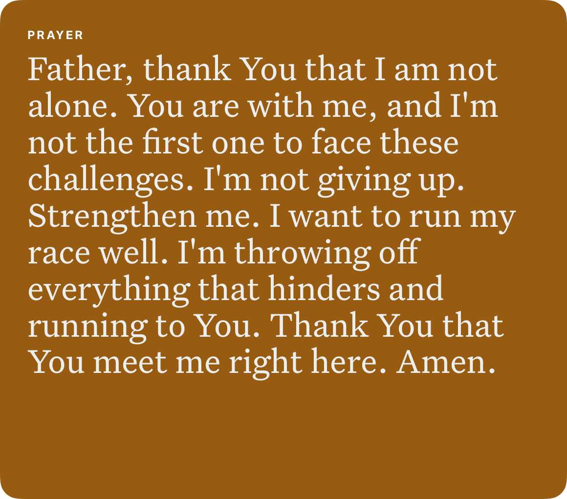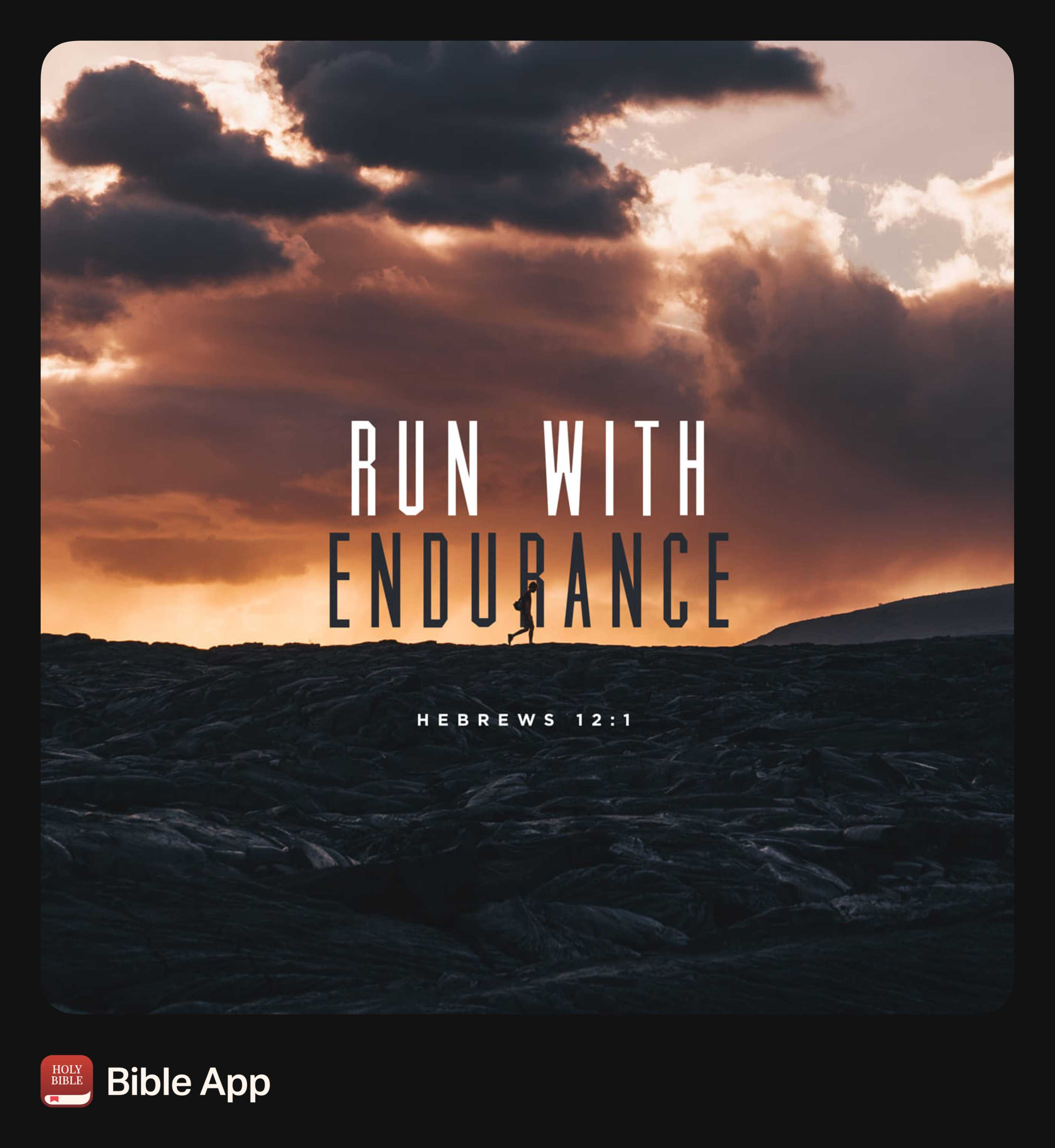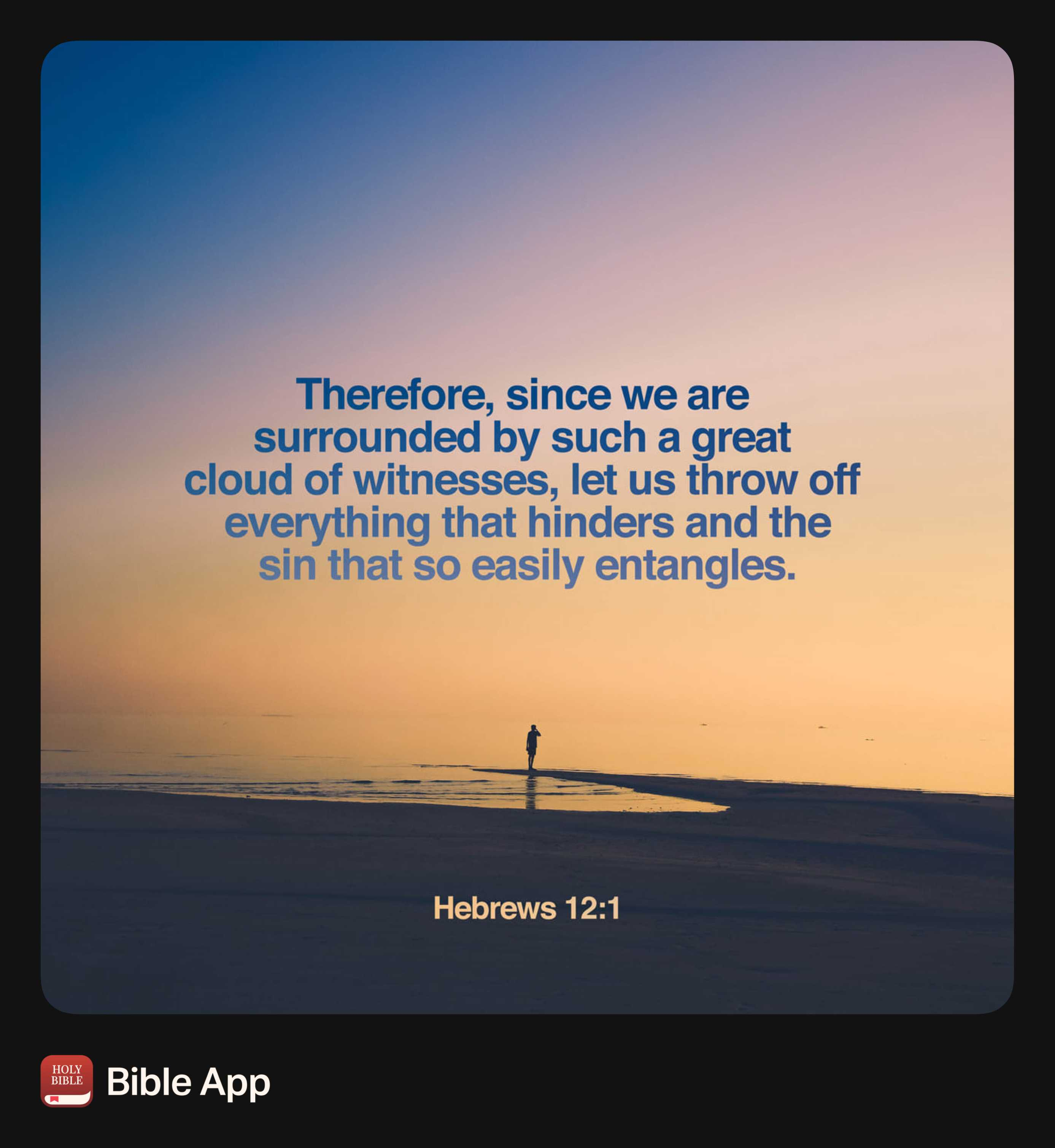 "Therefore, since we are surrounded by such a great cloud of witnesses, let us throw off everything that hinders and the sin that so easily entangles. And let us run with perseverance the race marked out for us."