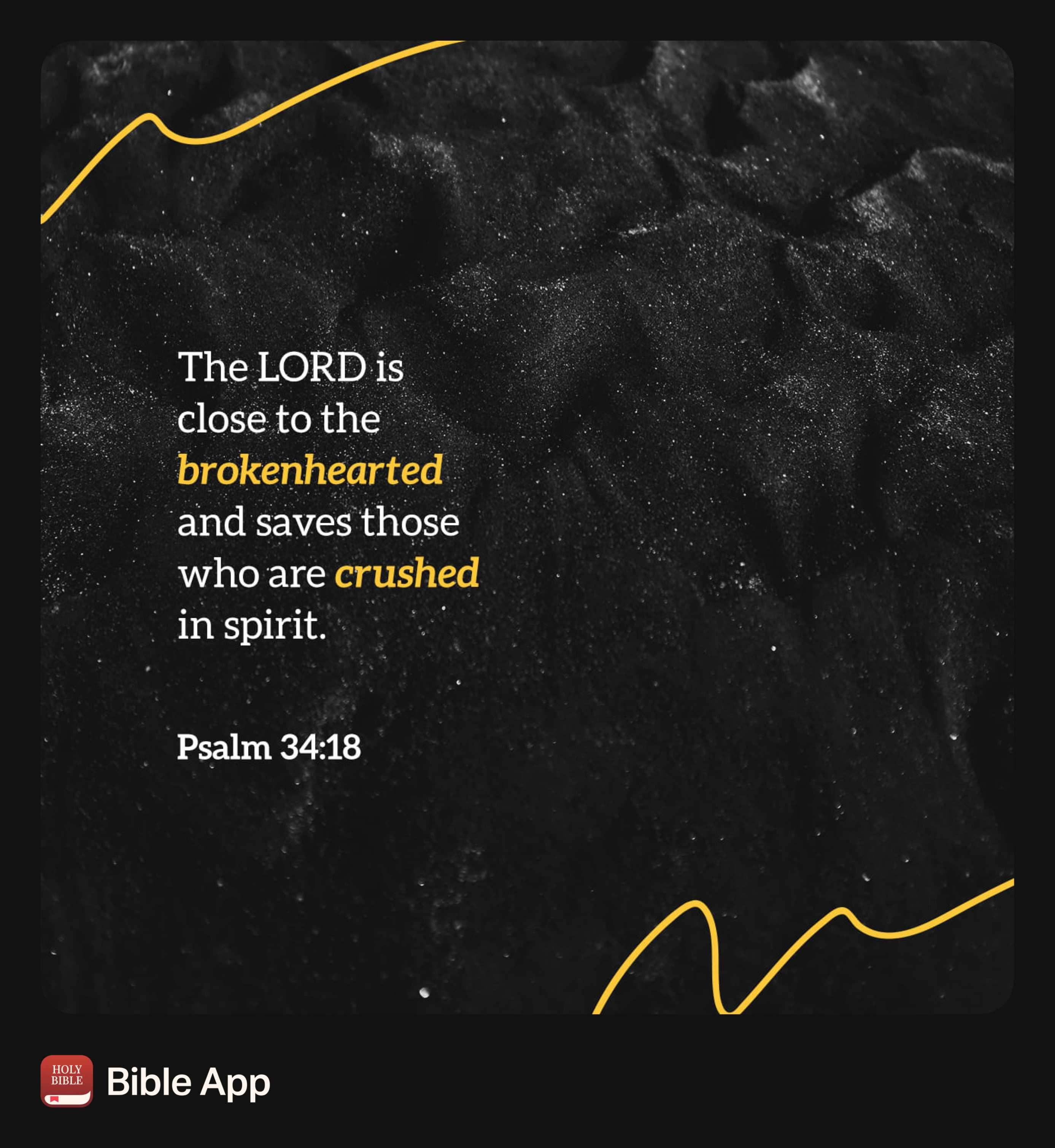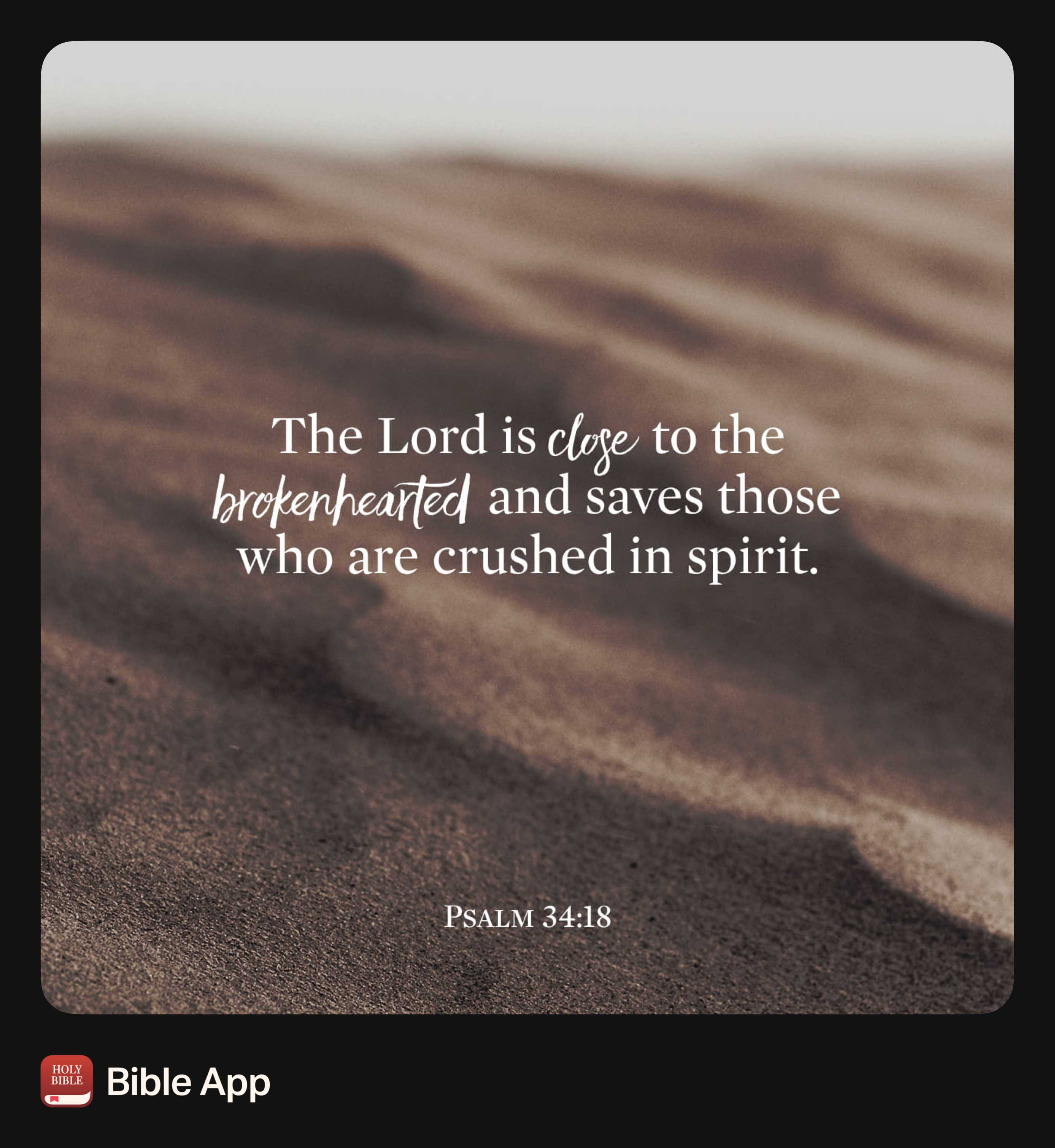 The Lord is close to the brokenhearted; he rescues those whose spirits are crushed.