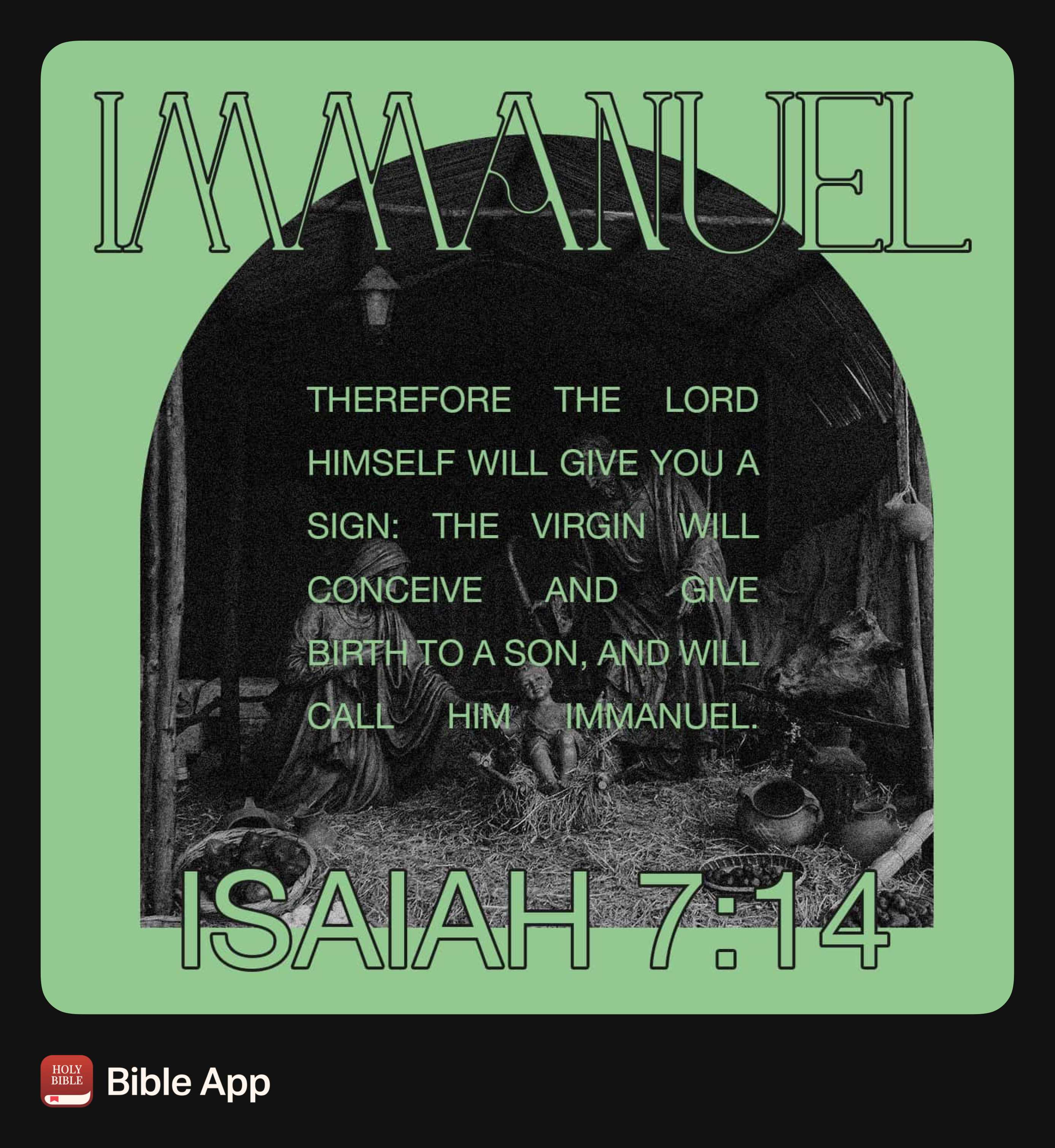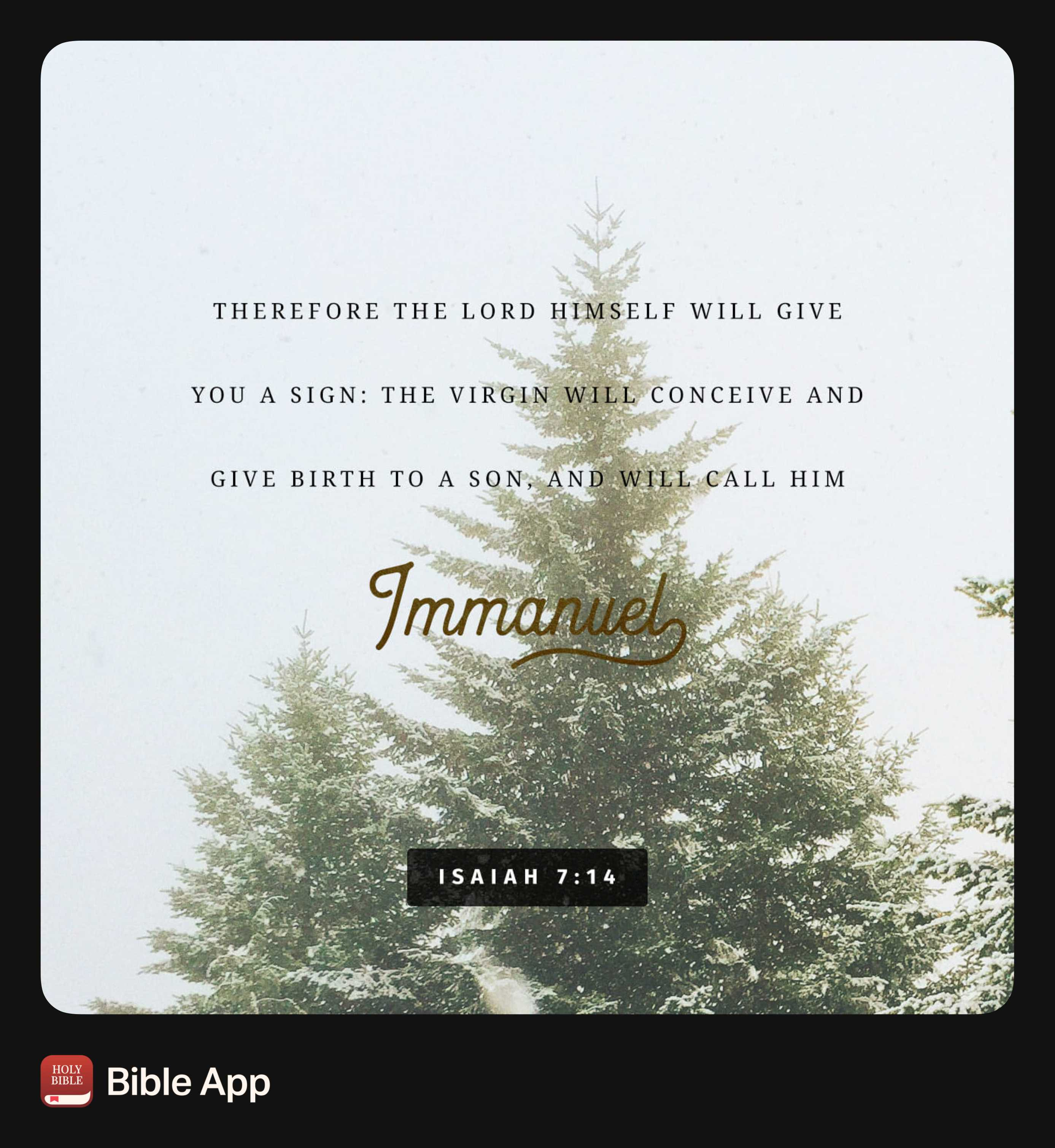 Here, the prophet Isaiah is giving the people of Israel a reason to hope because of God’s good promise—the promise that He will provide a sign and He will show up for us. Because that’s what Immanuel means: God with us.