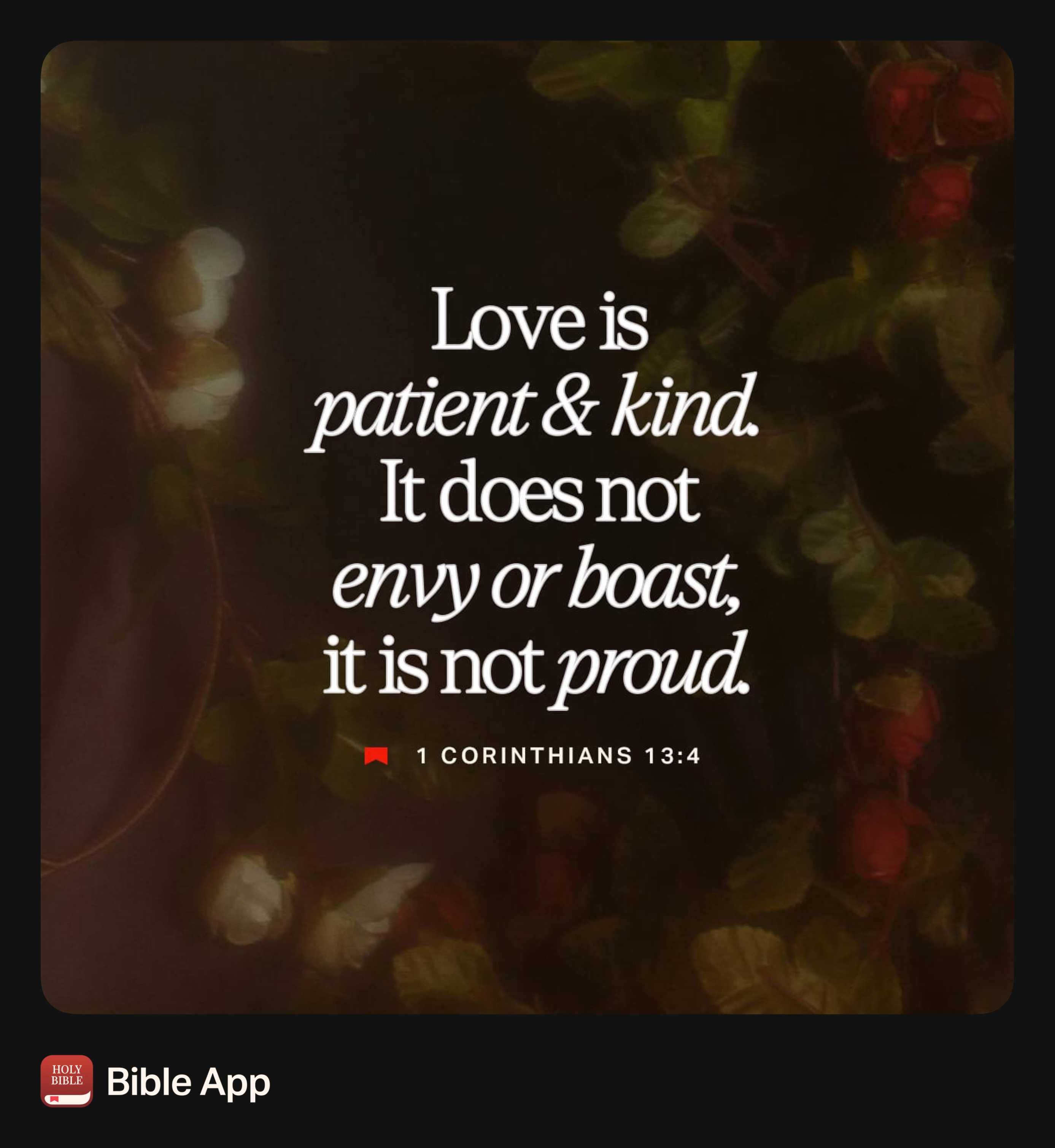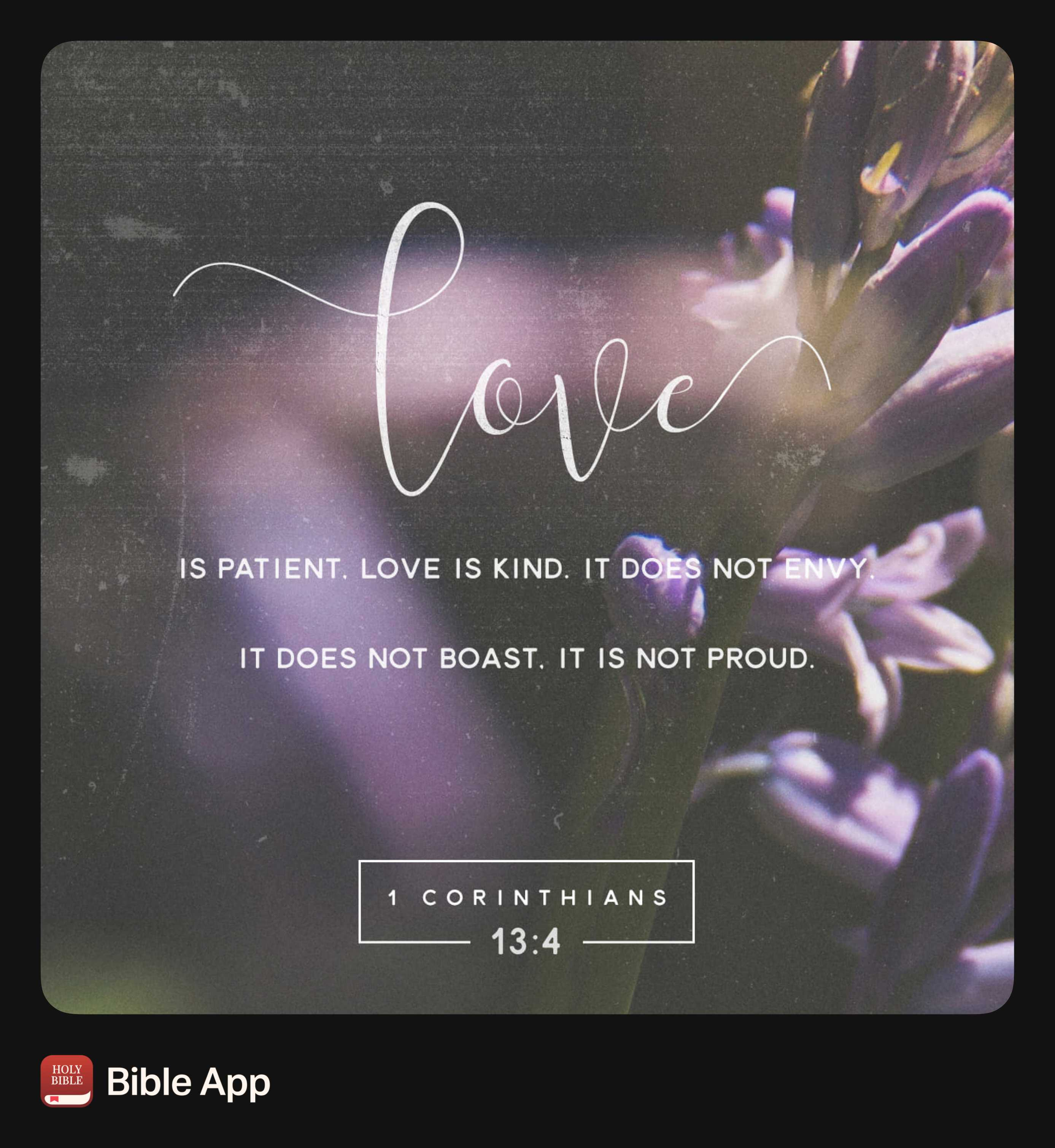 “Love is patient, love is kind. It does not envy, it does not boast, it is not proud.”