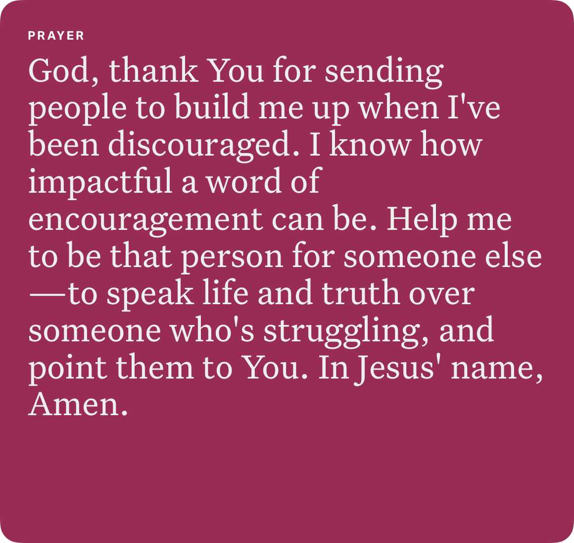 Encouragement can change someone’s attitude. It can lift someone out of a dark place. It can remind them of what's true when the truth feels foggy. Speaking life and truth over someone can give them the hope and determination they need to push through a hard season.